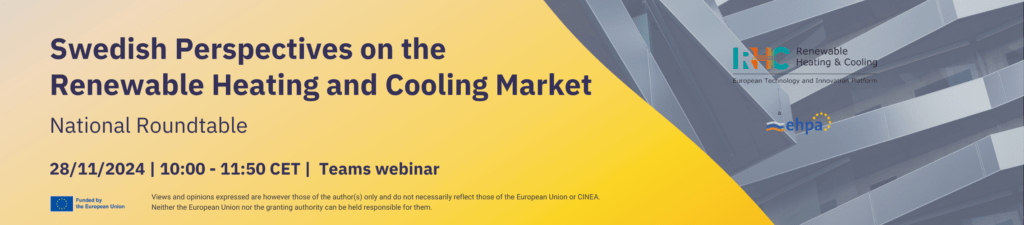 The National Round Table: Swedish perspectives on the Renewable Heating and Cooling market is part of the European Technology and Innovation Platform on Renewable Heating & Cooling (RHC-ETIP) and represents a series of national panel discussions and presentations involving market actors and other relevant stakeholders.