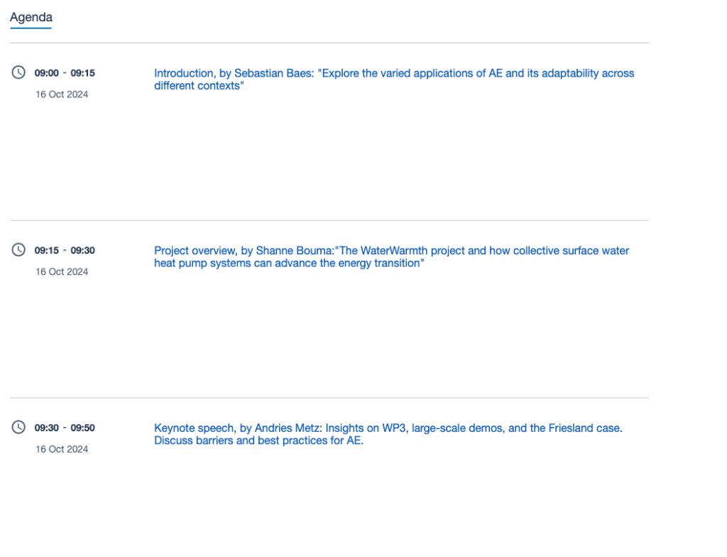 AE represents a significant opportunity for sustainable heating and cooling—a game-changer in the quest for a more sustainable and resilient future. The project WaterWarmth develops inspiring pilots and real-world examples that show its immense potential. Our goal is clear: to help energy communities to integrate AE in their operations, significantly contributing to the energy transition in the North Sea Region.